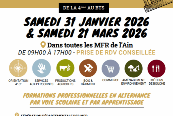 La MFR de La Vernée, depuis plus de 50 ans à Péronnas, propose toutes ses formations par alternance sous statut scolaire, par apprentissage ou en contrat de professionnalisation dans les secteurs du commerce, de la vente, du service, de l’accueil et des travaux paysagers.